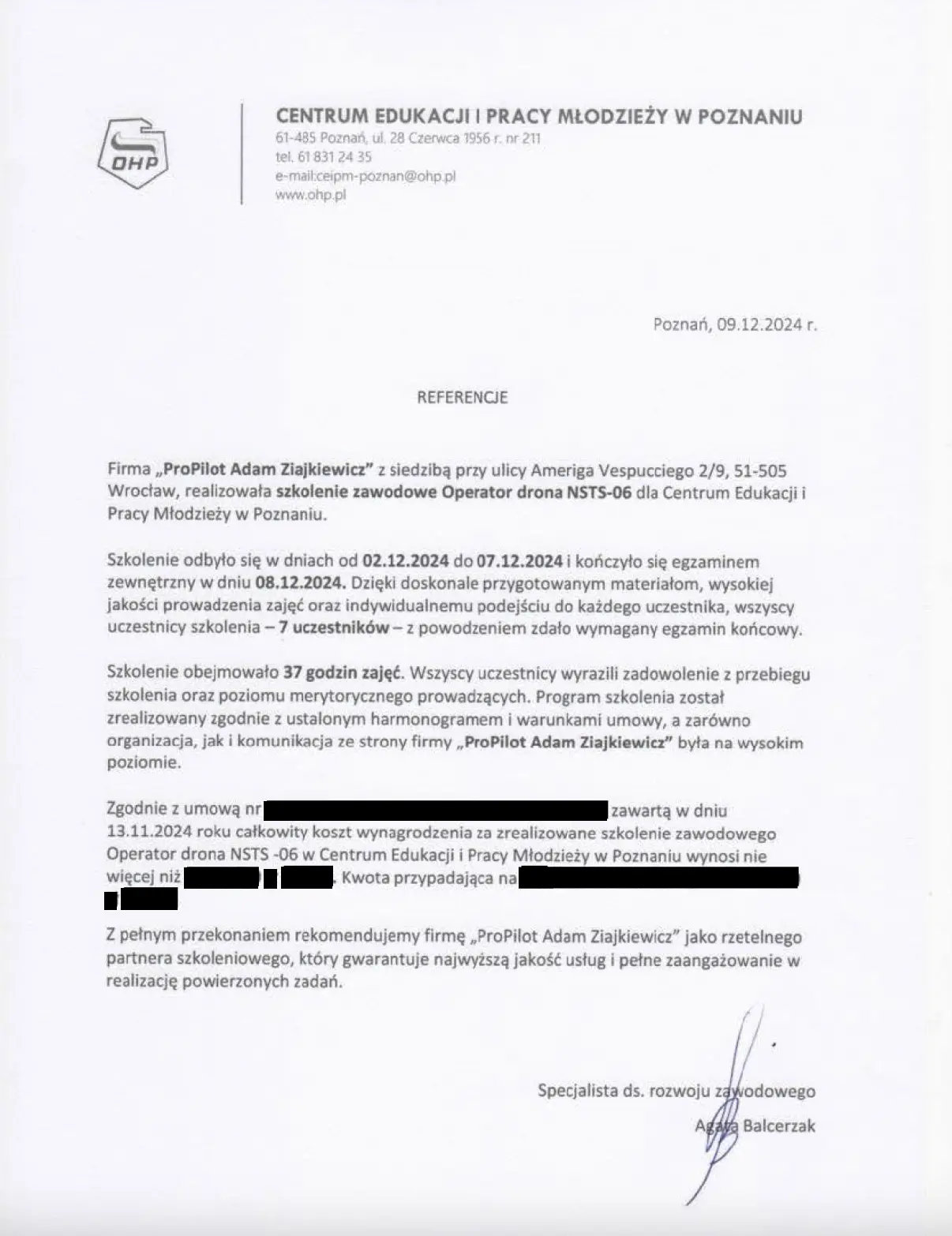 Specjalizujemy się w szkoleniach do certyfikacji pilotów dronów. Oferujemy profesjonalne i efektywne szkolenia. Doświadczeni instruktorzy zapewniają Tobie indywidualne wsparcie. Zdobądź umiejętności potrzebne do bezpiecznego i legalnego latania dronami. Dołącz do naszych zadowolonych klientów, którzy zdobyli już certyfikat pilota drona. Skontaktuj się z nami, aby dowiedzieć się więcej o naszych szkoleniach.
